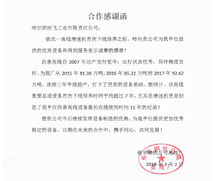 哈爾濱哈飛工業(yè)有限責(zé)任公司旗下的機(jī)電設(shè)備制造產(chǎn)業(yè)是目前國內(nèi)規(guī)模大、專業(yè)的高速線材軋機(jī)和棒材軋機(jī)整機(jī)及備件的生產(chǎn)制造企業(yè)。公司現(xiàn)坐落于哈爾濱市平房區(qū)汽車零部件工業(yè)園B區(qū),占地面積30000多平方米。現(xiàn)有員工近550人,其中具有中高級(jí)職稱的研發(fā)及工程技術(shù)人員100余人。 公司曾獲得冶金部授予的“高線軋機(jī)設(shè)備優(yōu)單位”稱號(hào)、國家技術(shù)進(jìn)步二等獎(jiǎng)等獎(jiǎng)項(xiàng),公司生產(chǎn)的十八項(xiàng)高線軋機(jī)重要部件通過了技術(shù)鑒定... +MORE